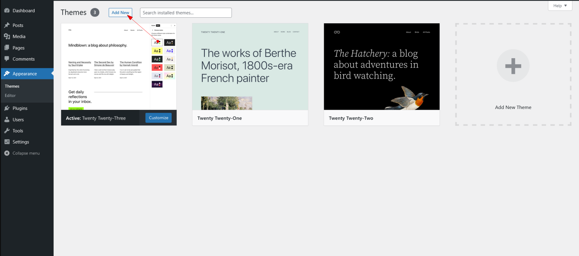 - Log in to your WP Admin Dashboard and go to Appearance > Themes